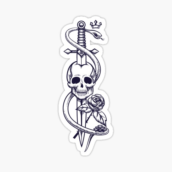 Skull Sword Snake Tattoo Sticker For Sale By Ravensdesign Redbubble